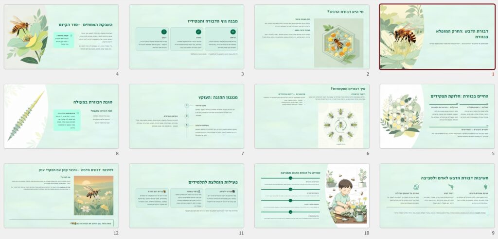 מצגת בת 12 שקפים על דבורת הדבש